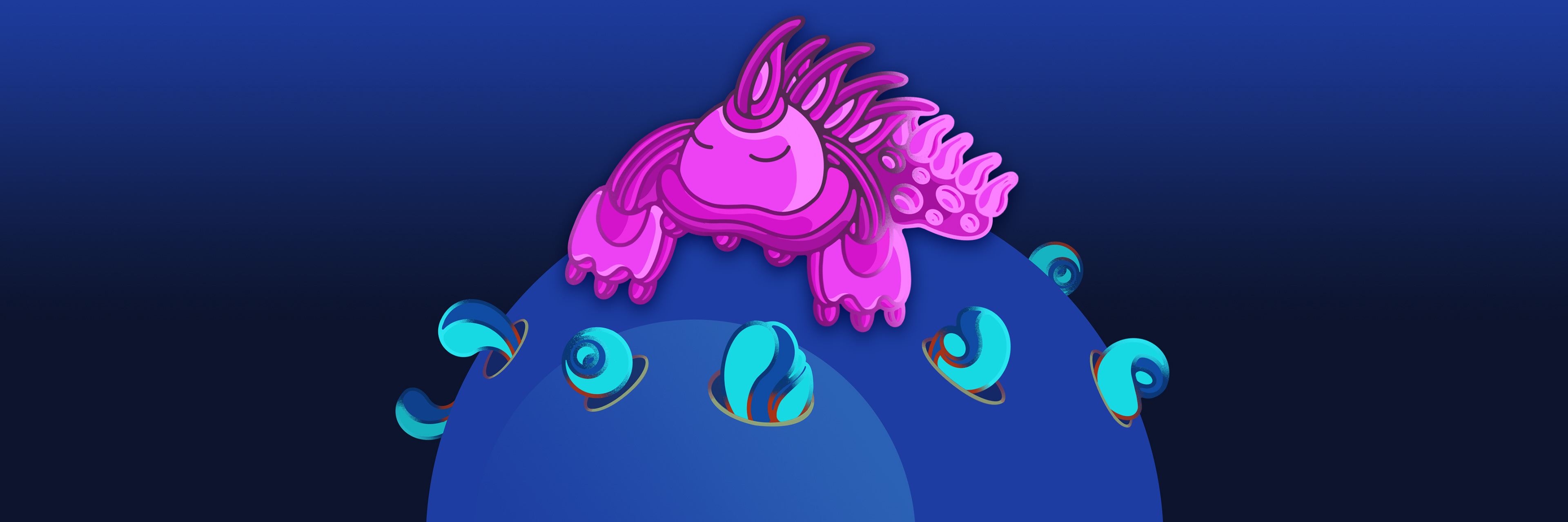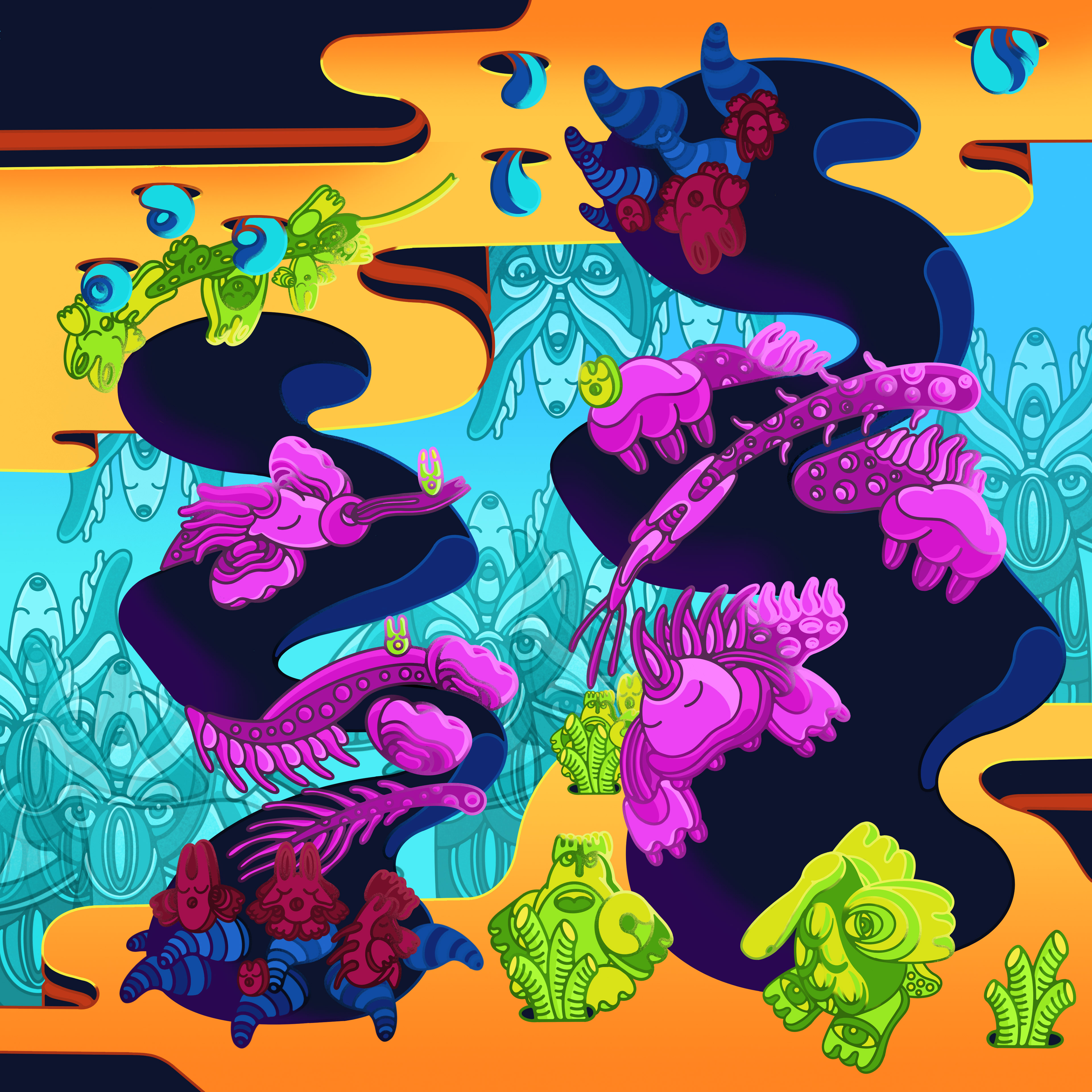 Illustration, CGI There are pink dragons living in gorges who spend days sitting on black hazes and walking upside down.